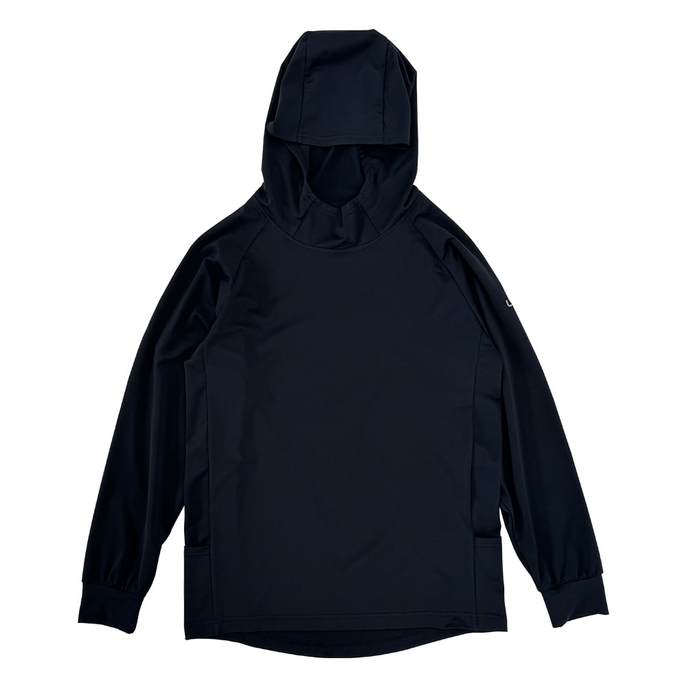 ペットボトルのリサイクルポリエステル糸を使用することで軽くて強いストレッチ性と肌に滑らかで着心地が良く快適な風合いを重視した軽量プルオーバーパーカーに仕上がっています。